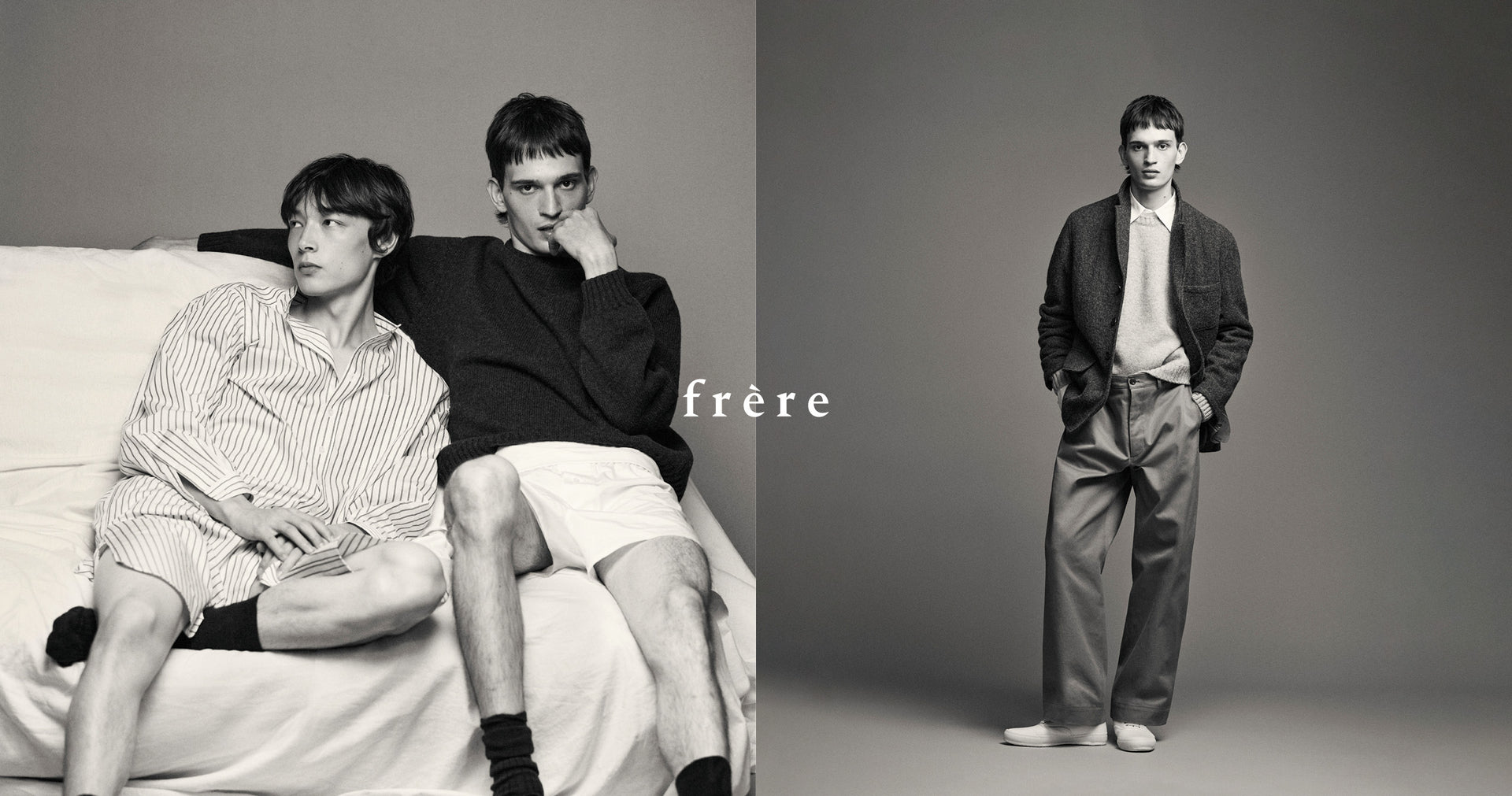 « Frère is a collection of clothing for men. Frère is also an idea: getting dressed is a cultural statement that testifies to the films, albums, books that we love. Frère is also an image. Or rather a series of images. Of a shirt collar softened and twisted by time. Of a white rib knit tank top casually fallen at the foot of the bed. Or even of wool gabardine city trousers breaking generously over a pair of well-loved canvas tennis shoes. Frère is unquestionably about elegance. Sometimes polished, often classic, always nonchalant, never nondescript. But Frère is above all an attitude, masculine, sensitive, offbeat, discreet, decisive, smiling, charming and simple in turn, from one moment to the next. Frère is all that at once. »