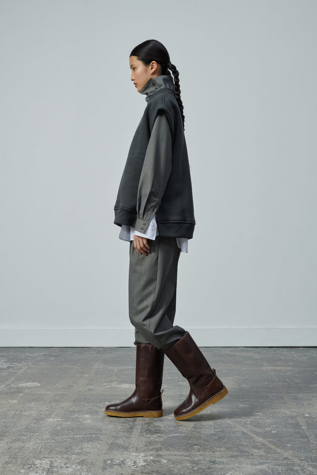 - Straight, wide slip-on boots