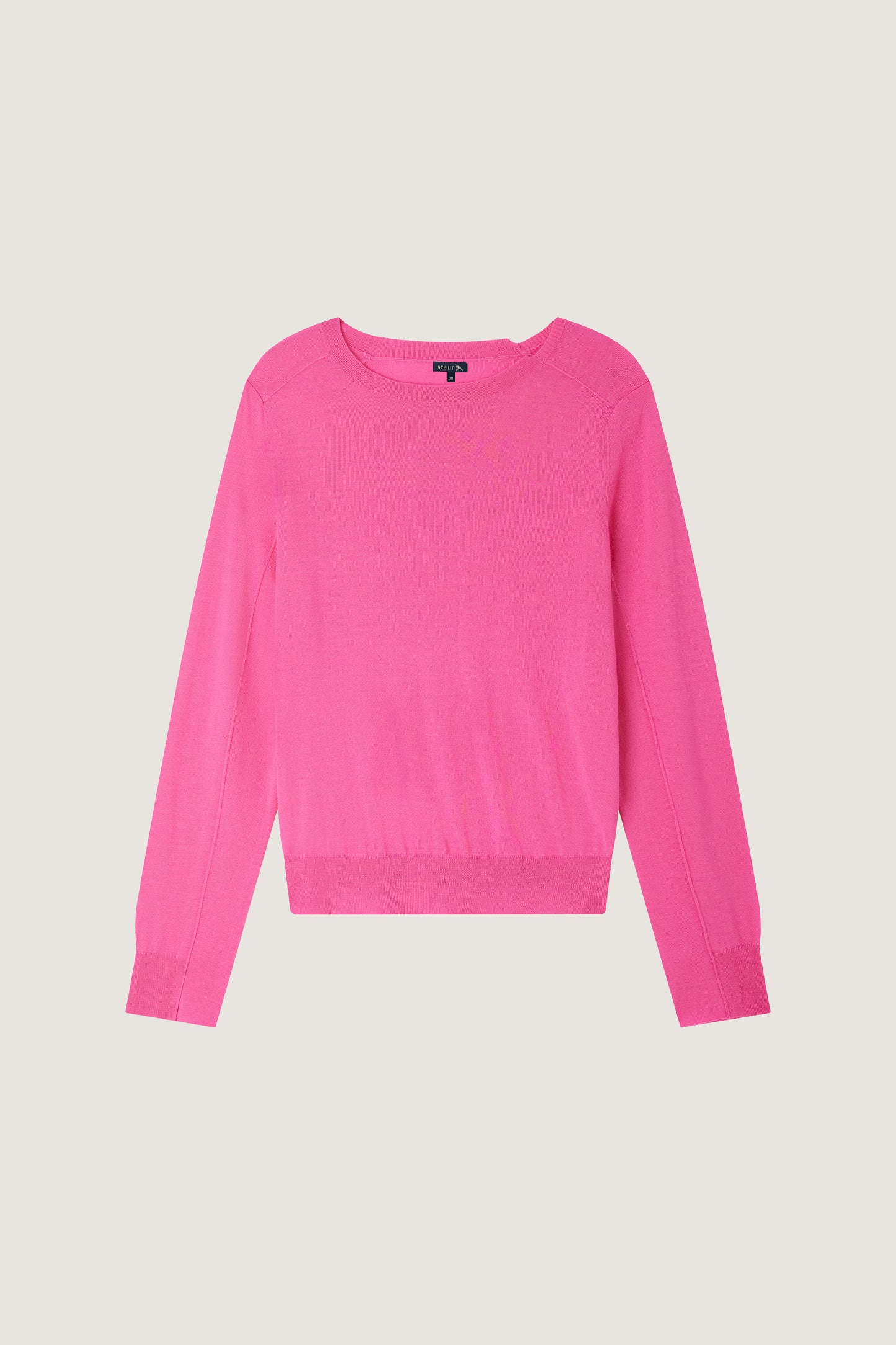 australie jumper Pink long-sleeved extra-fine gauge merino wool jumper with asymmetrical trims